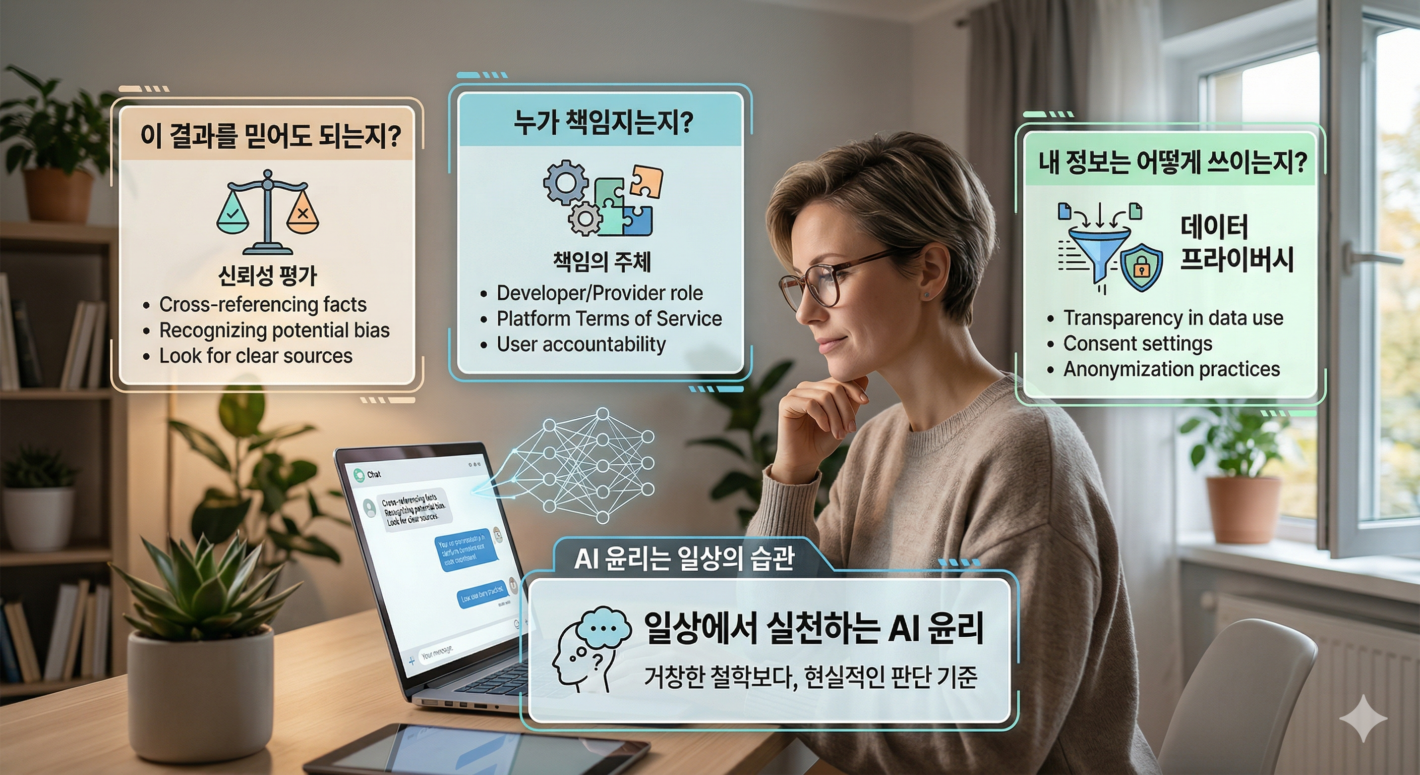• 중요한 건 거창한 철학보다, 이 결과를 믿어도 되는지, 누가 책임지는지, 내 정보는 어떻게 쓰이는지를 묻는 습관입니다.